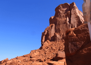 先住民ナホバ人が案内するジープ乗ってモニュメントを見ながらガタガタ道を赤い土煙を上げて進みます。