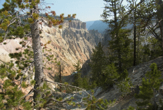 イエローストーン大渓谷、長さ32kmわたって続く絶壁、ここには黄色やピンク入りの地層が見られる谷です