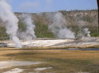 温泉、豪快な間欠泉などの熱水現象と呼ばれています。地球の息吹を肌で感じられるイエローストーンです。