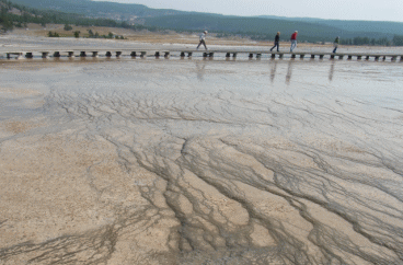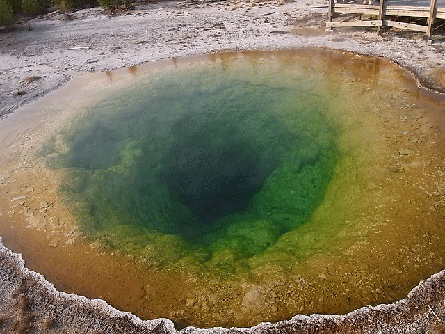 の中だけで生きています。イエローストーンには高温の温泉だけに生きるバクテリアも多く、このバクテリア、