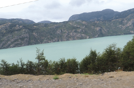 | 何とも言えない綺麗なコバルトブルーの水をしたヘネラルカレーラ湖沿いを見ながら走ります。 | ||