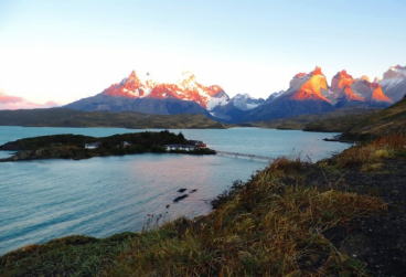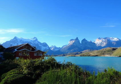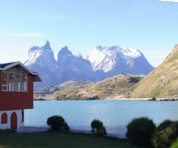 | パイネの山々が見えます。素晴らしいペオエホテルに宿泊できまして嬉しく思います。 | ||