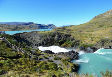 | サルト・グランデ パイネの大滝 ノルデンフェールド湖からペオエ湖へと進むみます。 | ||