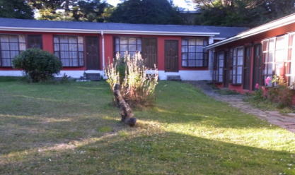| 一人づつ座れます。雨が降りだしました。一番の楽しみにしていたパイネペオエホテルです。 | ||