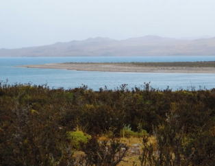 | この湖を餌場にする水鳥も多く見られます。グァナコも集団でおりました。 | ||