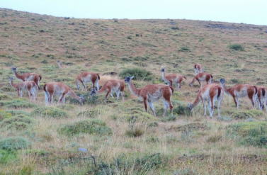 | アルゼンチン湖を望む展望台、可愛いグァナゴの集団にあいました。 | ||