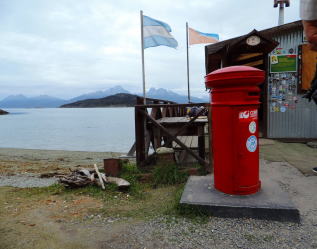 マゼラン海峡を渡りウシュアイアまで来ました。南極まで1250km足らずで着くそうです。 |