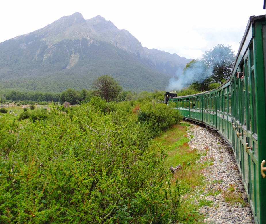 世界最南端を走る蒸気機関車にひかれた観光列車、もとは囚人たちが木を切り出す運搬用車両でした。 |