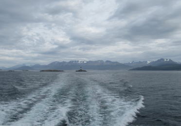 フランチェスコ号に乗り、 ウシュアイア湾を出て、ビーグル水道へ |
