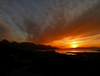 大きな窓いっぱいに広がる景観、何とも言えない空が時間を追って変わって行きます。 |
