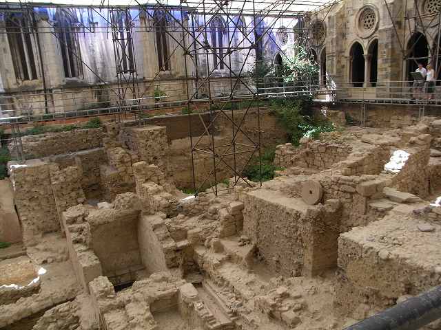 回廊は古く崩れ落ちている。中庭には遺跡を堀りでした跡がありそのままの状態で見られる。