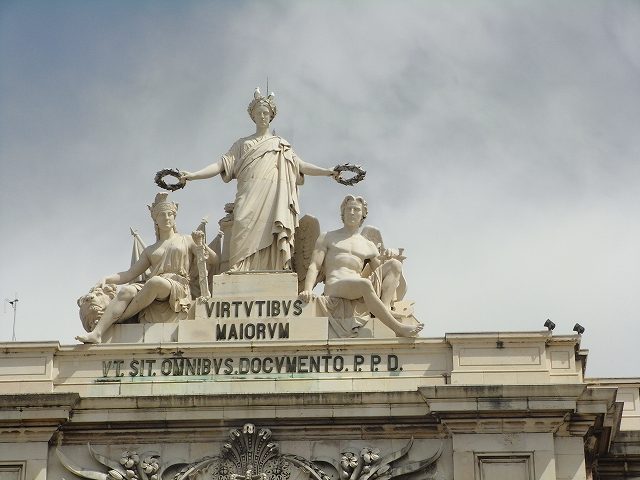 中央には立派なドン・ジョゼ1世の騎馬像広場は大勢の人で賑わっており電車 バス市内観光電車などがある。この広場は宮殿広場と言われる他とは違う何か高貴さを持つ広場と感じた。