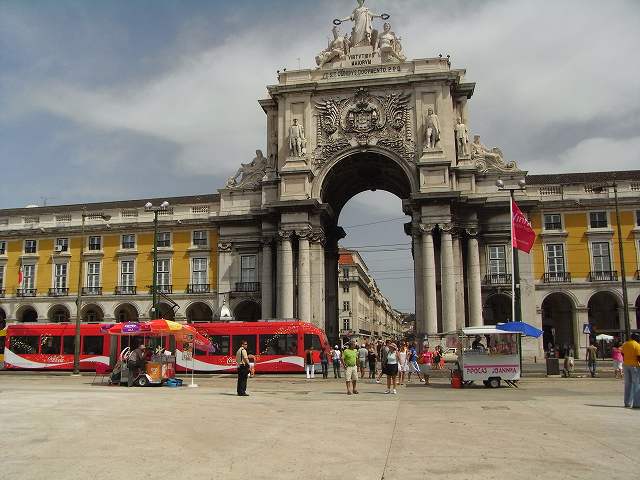 市電28番に乗り降りたところがコメルシオ広場1755年の大地震で破壊されたマヌエル1世の宮殿があったことから宮殿広場と呼ばれている。海に面していて見晴らしが素晴らしい。