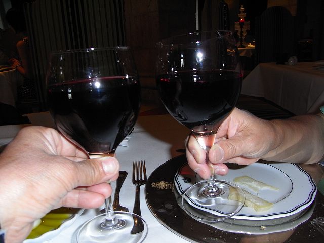 ホテルでのデナー ポルトガルに来られて本当に良かったワインで