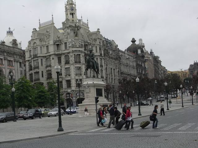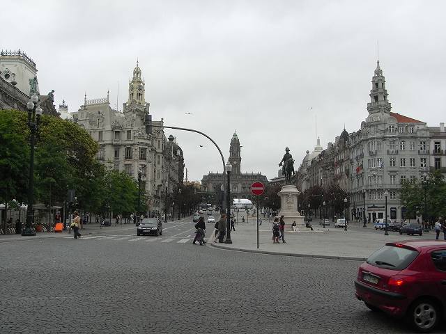 若い夫婦と途中まで一緒に行き旅は道ずれ後で会うことを決めてポルトの街を楽しむ駅のそばにあるリベルダーデ広場にある市庁舎、そして周りにある建物には世界遺産にも登録されている歴史地区。ドロウ川の北岸の丘陵地に築かれた、起伏の多い街、坂の多さは{7つの丘の街}と呼ばれている。