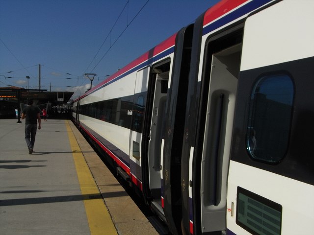 ホテルで作った海苔巻きを弁当を持って、思いで深いポルトを後にする。ポルトガル鉄道が誇る、設備のよい高速列車アルファ・ペントラルに乗る。さすが乗り心地がよい。リスボンへ帰る。ブドウ畑 海が見える。電車の中での海苔巻きは最高においしく感じられた。 川の流れが見えてきたビルが多くなる。リスボンが近ずいてきているのが分かる。