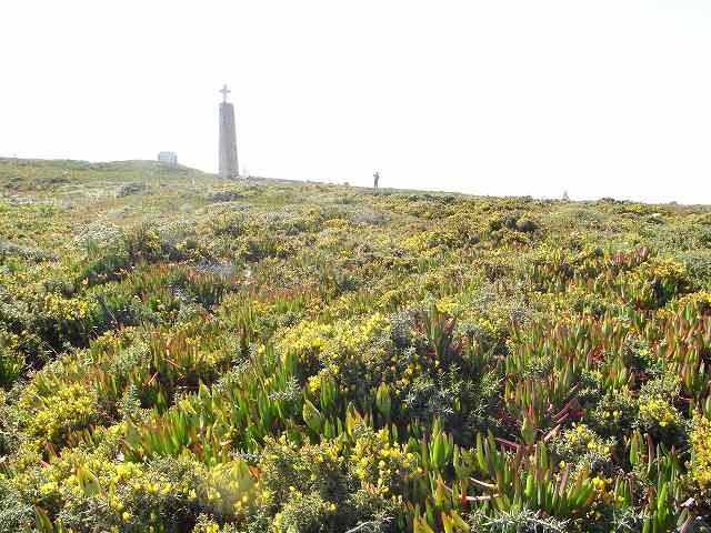 広くて何もないかわいい花がたくさん咲いている。遠くから見る海は雄大で素晴らしいユーラシア大陸の最南端で高さ140mの断崖の上にポルトガルの詩人が読んだ詩の一部を刻んだ石碑が建っている。