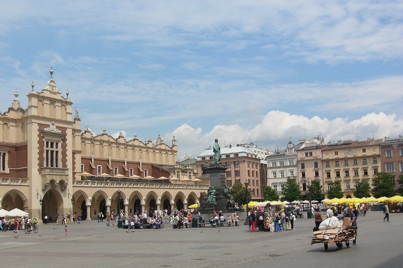 突然視界が開けて、大きな広場にでる。ここがクラクフ旧市街の中心、総面積4万㎡の中央市場広場。