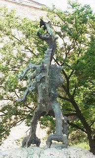 | ヴァヴェル城の南側、城壁の最も川べりに近いところに竜の洞窟があリます。伝説によれば、昔ヴィスワ川に竜が棲んでいて、 |