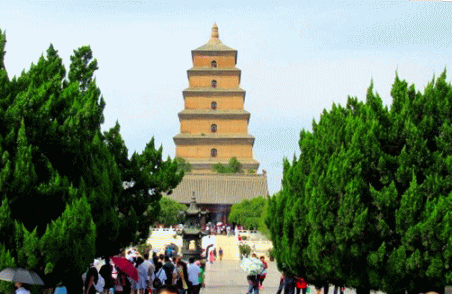 大雁塔は652年の創建で四角7層、高さ64m。唐の時代に建造された煉瓦造りの美しい塔が建っています。 |