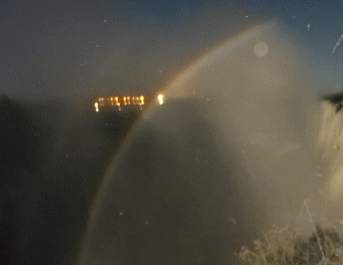 | 一ヶ月に3日間だけ満月の夜ビクトリアの滝に浮かび上がる純白に輝く虹。滝の飛沫が満月の光を受けて | |||