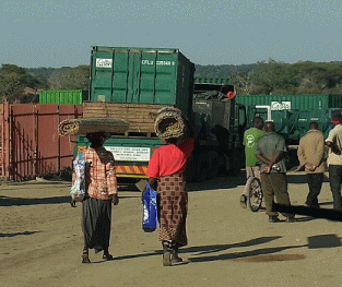 | すぐに対岸に着いてしまいました。ボツワナ入国です。国境は現地の人々で混みあっていました。トラックは | |||