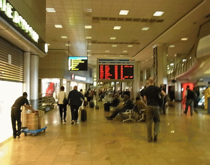 | 飛行機から南アフリカのヨハネスブルグの街が見えてきました。空港はアフリカ最大のハブ空港 ずらっと並ぶ免税店 | |||