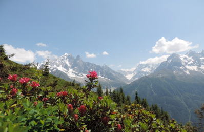 | ブレヴァン 教会の後ろにロープウェイに乗り場がありました。急斜面をあがります。 モンブランの反対側にあります。4000m以上の山々のモンブラン山魂を一望の もとに見渡せるアルプスで最も美しい展望台です。 ブレヴァンの展望台2525mからはモンブラン絶景を眺めました。ここから パラセーリングを楽しむ人がいました。色とりどりで見ていても空を 自分で飛べるなんて夢みたいだと感心しました。岩を登って楽しむ人もいます。 私達はハイキングを楽しみました。平行移動して近くにゴンドラで、 そこから降りることが出来ると思っていましたが、スキーの時だけ動くそうです。 仕方なく、結局フレジェールまで歩きました。岩が落ちていて足場が悪く、 怖くて通らなければ先に進めません。子供も通っていて、 走って通っている人、考えられません? 歩いてもなかなか着きません。マウンテンバイクで猛スピードで降りて 行く人もいました。途中、草原に座り贅沢なアルプスノ山々の景観、 周りに広がる高山植物を楽しみながらフレジェールのロープウェイ 乗り場に着きました。 その先にリフト乗り場があり、アイデックス2396mにあがりました。 リフトが大きく4人乗りです。リフトに乗り周りのモンブランや他の山々も 形を変えて見えました時々雲に隠れますが素晴らしい景色です。 岩を登っている人もいます。その下の雪の上を駆けて戻ってくる人が おりました。すごいなあ?びっくりして見てました。 フレジェールのロープウェイ乗り場に戻り、レ・ブラシャモニーまで ロープウェイで降りました。2番のバスに乗りシャモニまで帰りました |