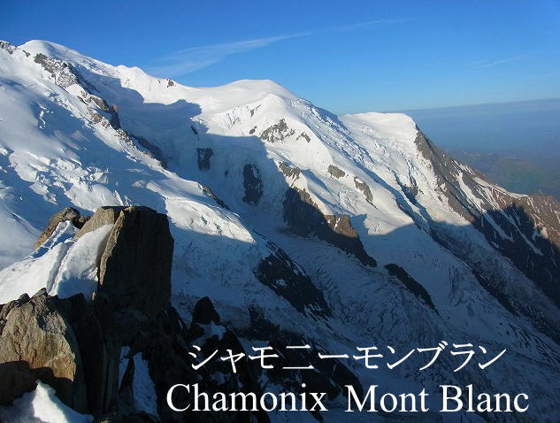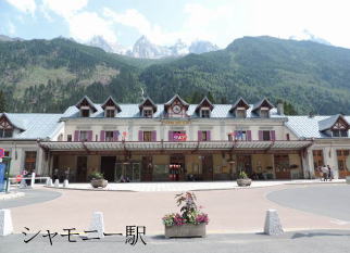 | シャモニ・モン・ブラン ツェルマットから電車で移動しました。途中乗り換えしながらマッテニー駅 から氷河特急に乗りましたが、途中、線路工事のためバスになりました。 山を越えていきました。 標高1053mにある静かな山村,厚い壁の別荘が 並び、山岳リゾートの歴史を感じます。 ここではホテルに1週間滞在します。シャモニー駅前通りに面して すぐ近くでした。 シャモニーの谷間は膨大な氷河により形成されました。氷河はヨーロッパの 2倍位の地域を覆っていました。現在のシャモニーの辺りは少なくとも 1000mの厚さの氷で覆いつくされていました。このアルプスの巨山峰は 昔から人をひきつける魅力を持っていました。 アルプス最高峰のモンブラン4810m、フランス、スイス、イタリア3カ国に またがっています。天を突くような鋭い花崗石の針峰群が林立し、 それらの山を従えてアルプスの女王モンブランの白い頂が輝いています。 |