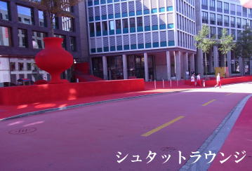 | シュタットラウンジ 真っ赤な絨毯をひいたような道がありました。見たことがなく不思議に 感じました。この地区は2005年に造られた道路のラウンジで、 真っ赤な椅子やテーブルが置かれ通り過ぎる人達も洋服が赤と白、 何か道路と同じ色でした。側には大きな花びんが 置いてありました。世界でもこのような道路は見たことありませんでした。 |