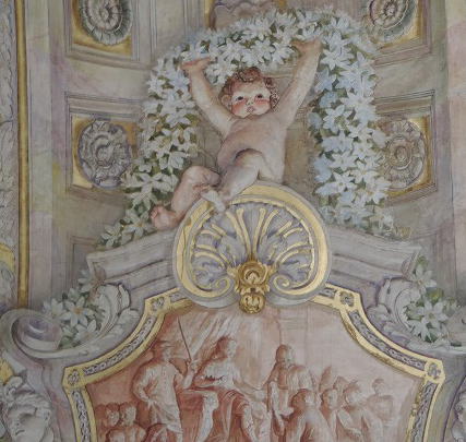 | 内部の天井画... 続きを読むにも目をみはるような青と金が使われています。 |