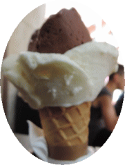 | 広場の角には人気のアイスクリーム屋さんがあり、たくさんの人が並んでいました。 | |||